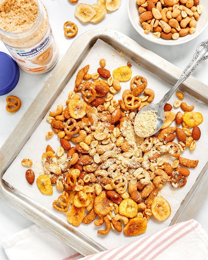 Peanut powder is made by combining peanut flour with added ingredients such as sweeteners or salt. Peanut flour is made by grinding high quality roasted peanuts, pressing out the oil, and refining the peanut meal into a fine powder. To make Peanut Butter & Co. Original Peanut Powder, we add a touch of cane sugar and a pinch of salt. We also offer a wide range of tasty flavored peanut powders created by adding simple ingredients such as vanilla, cocoa, honey, or ground flax seeds and ground chia seeds. Please visit our blog to learn more about peanut powder and how to use it.